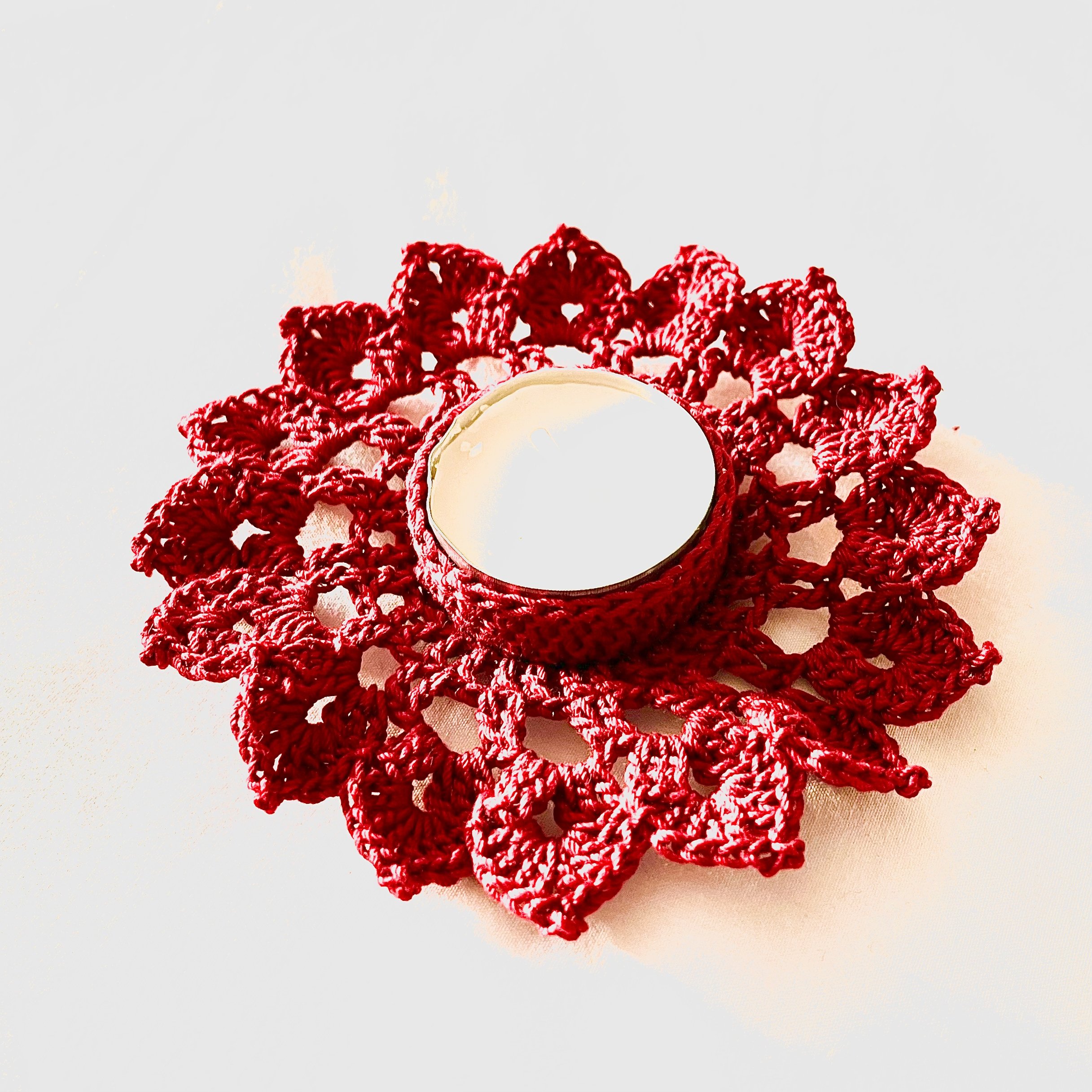 Gehäkelte Teelichthalter bringen ein sanftes Flämmchen auf den Tisch.